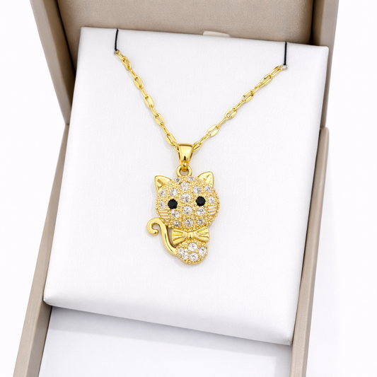 Uitverkochtelegante kattenketting met dubbele kattenhanger